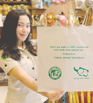 Di Taman Safari Indonesia (TSI), Cisarua, Bogor, Jawa Barat, kertas dihasilkan dari serat yang berbeda.Gajah, salah satu penghuni TSI terbesar, menghasilkan serat yang berlimpah. Ya, gajah sumatra (elephas ma ximus sumatranus) dikenal rakus dalam mengonsumsi makanan yang terdiri atas serat.