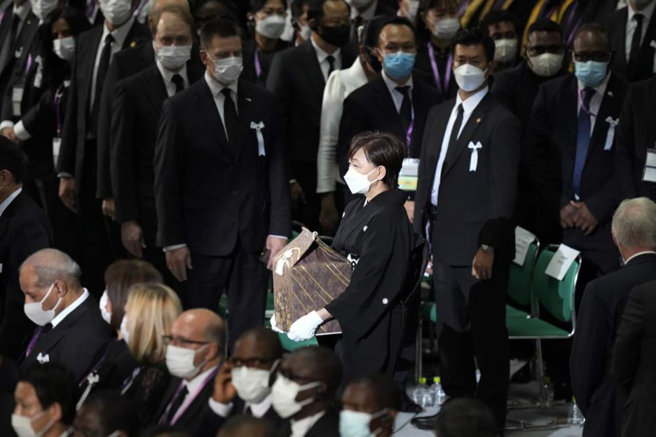 OLEH RIZKY JARAMAYA, FAUZIAH MURSID Jepang menggelar upacara pemakaman kenegaraan untuk mendiang mantan perdana menteri Shinzo Abe pada Selasa (27/9). Rangkaian bunga, untaian doa, dan 19 tembakan salut menandai penghormatan terakhir kepada Abe yang tewas ditembak pada Juli lalu. Upacara dimulai pukul 14.00 waktu setempat. Abu mendiang Abe dibawa ke Aula...