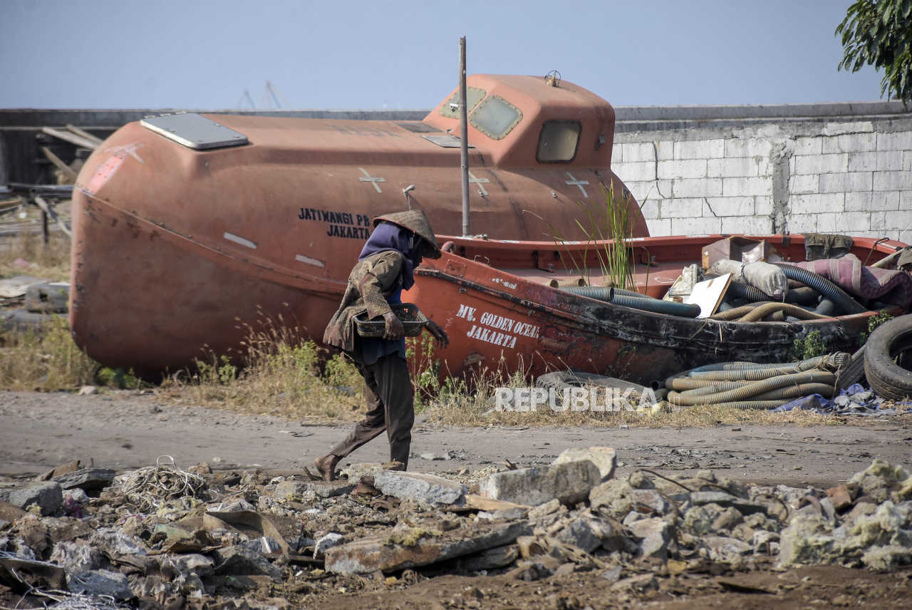 Warga mencari besi karat kapal di Kawasan Belah Kapal, Cilincing, Jakarta Utara, Selasa (29/8/2023). | ABDAN SYAKURA/REPUBLIKA