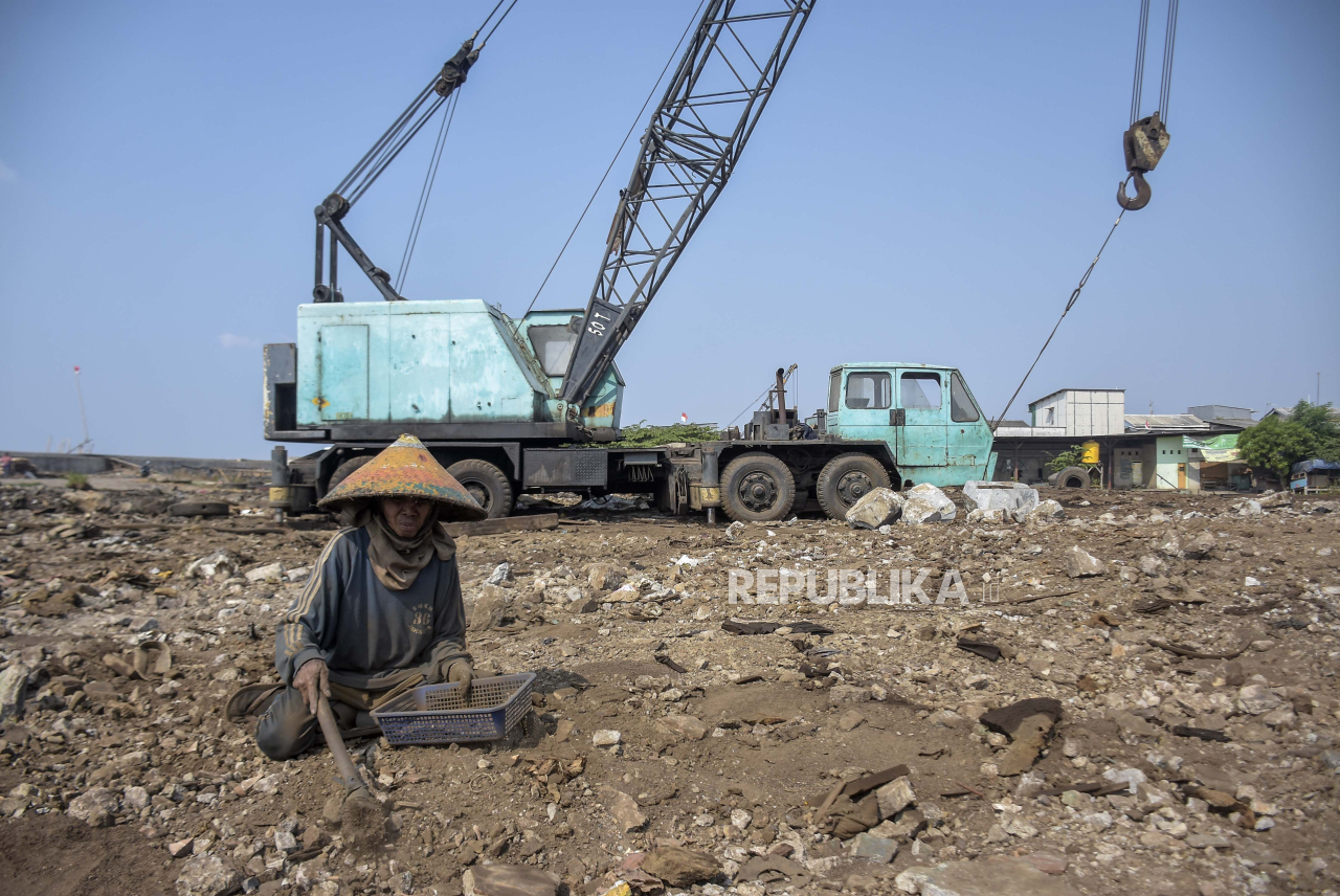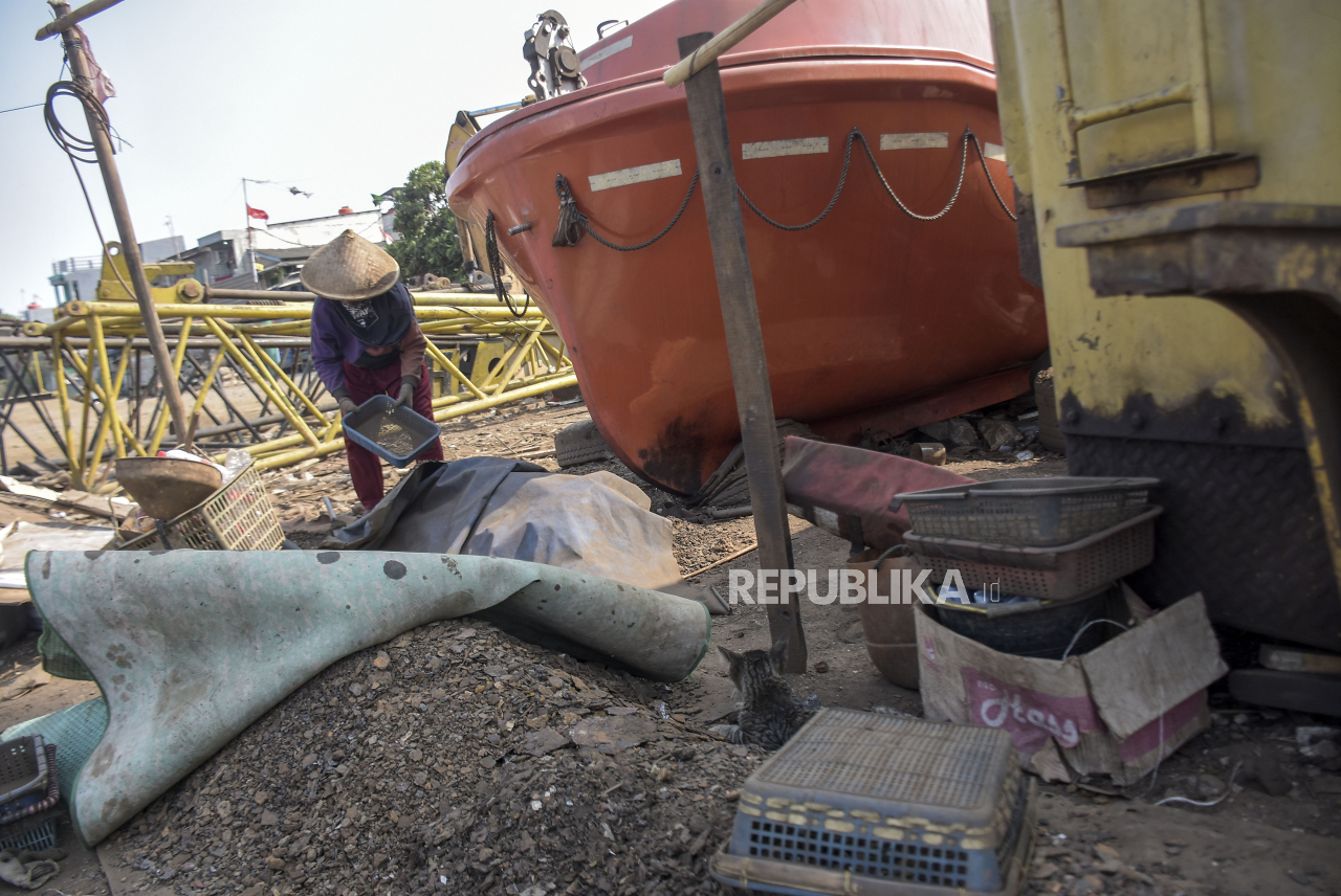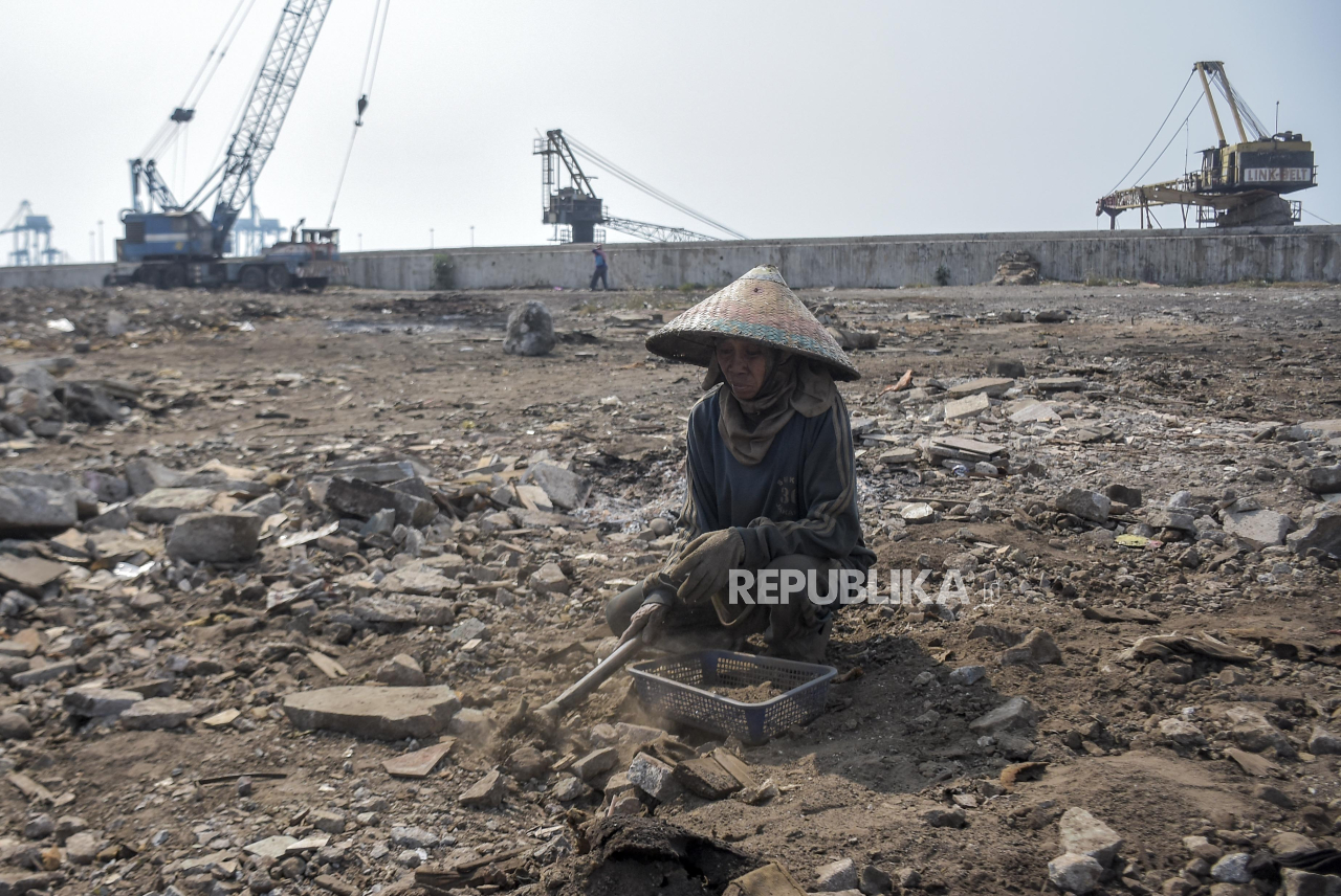 Warga mengais sisa besi karat kapal di Kawasan Belah Kapal, Cilincing, Jakarta Utara, Selasa (29/8/2023). | ABDAN SYAKURA/REPUBLIKA
