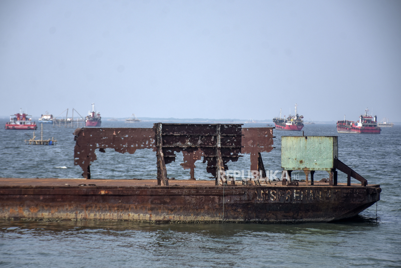 Kondisi bangkai kapal di Kawasan Belah Kapal, Cilincing, Jakarta Utara, Selasa (29/8/2023). | ABDAN SYAKURA/REPUBLIKA