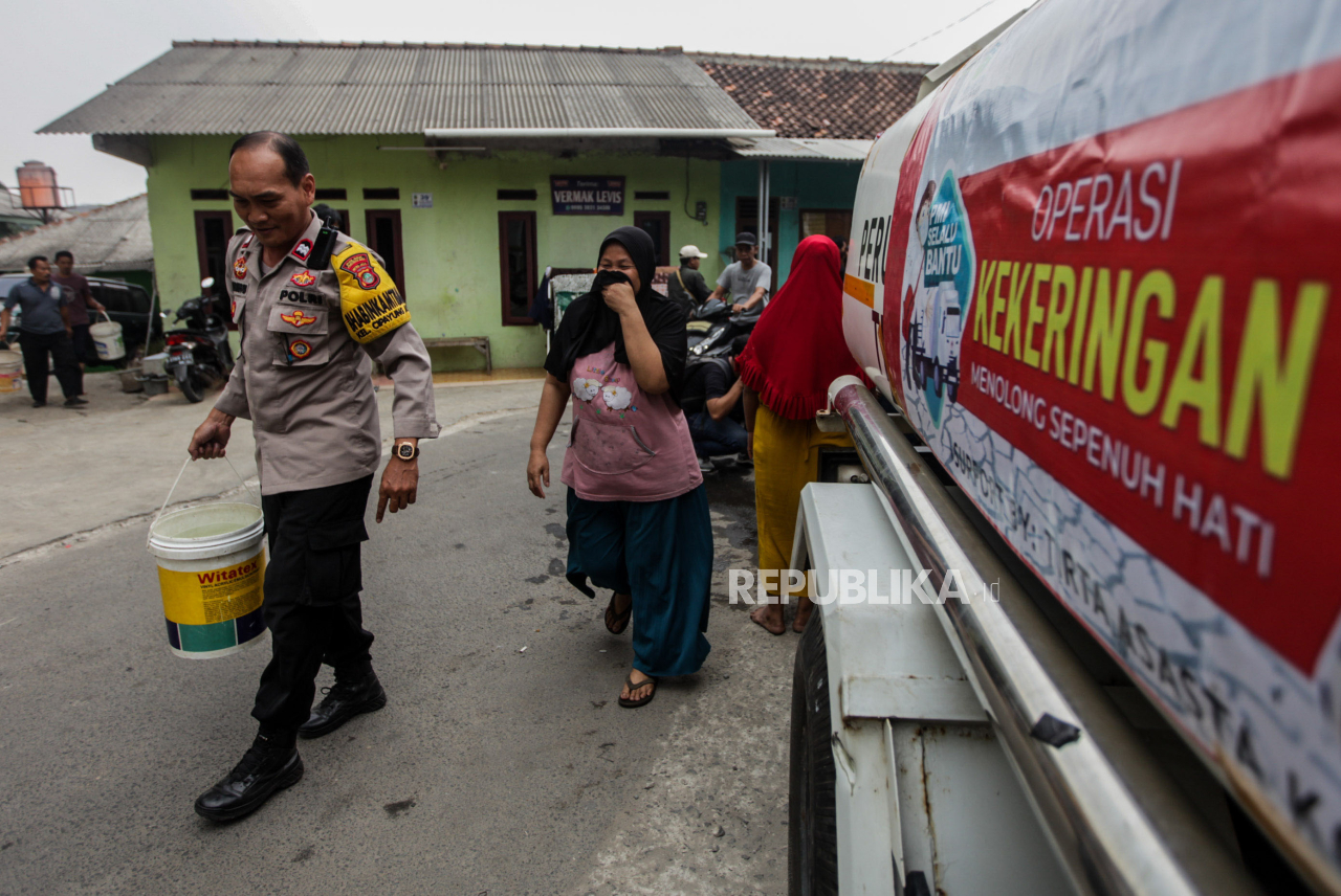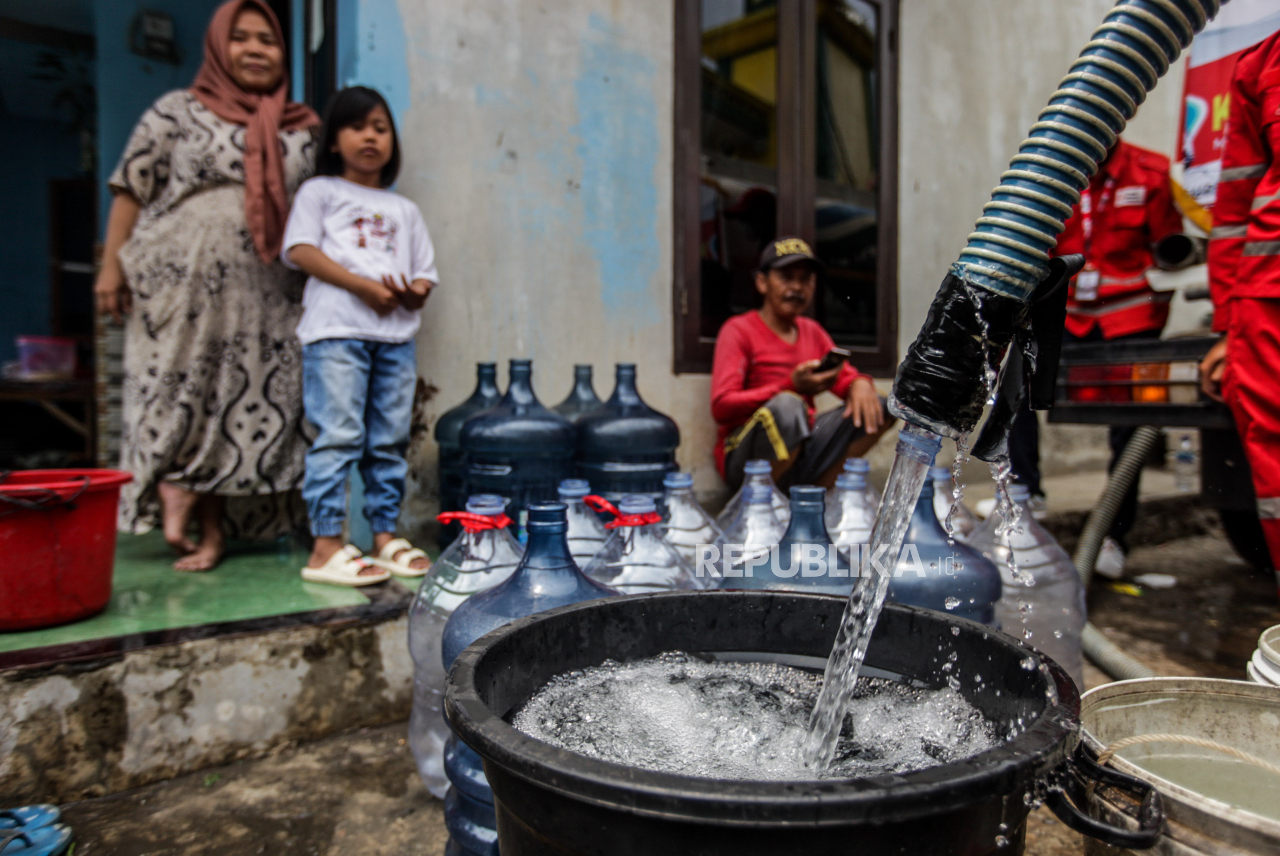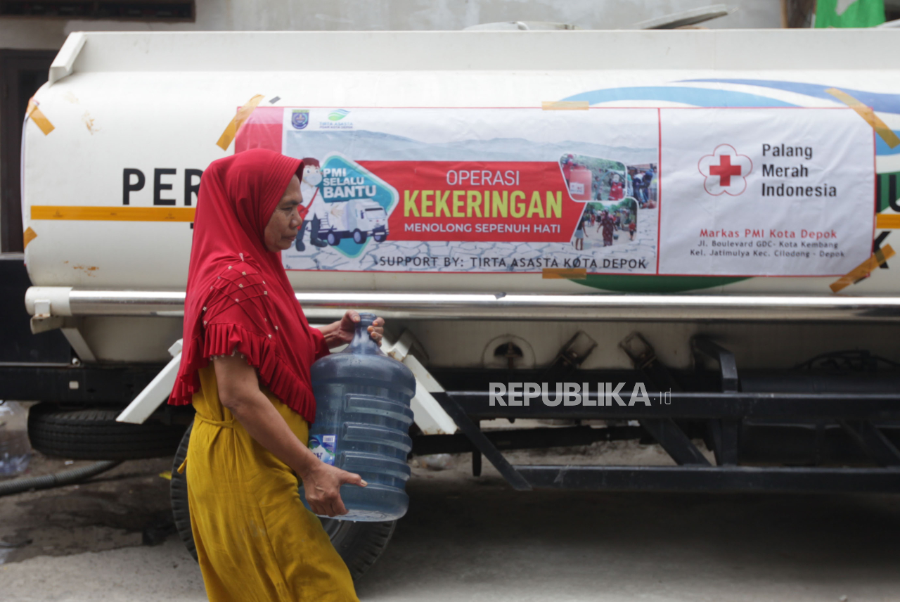 Kota Depok mencatat sejak 6 September telah mendistribusikan 41.000 liter air bersih kepada 809 KK terdampak kekeringan di empat kecamatan akibat dari kemarau panjang. | Republika/Putra M. Akbar
