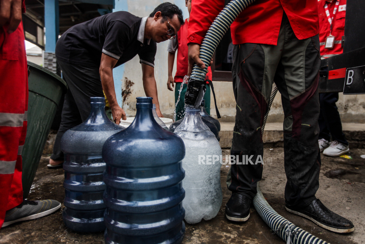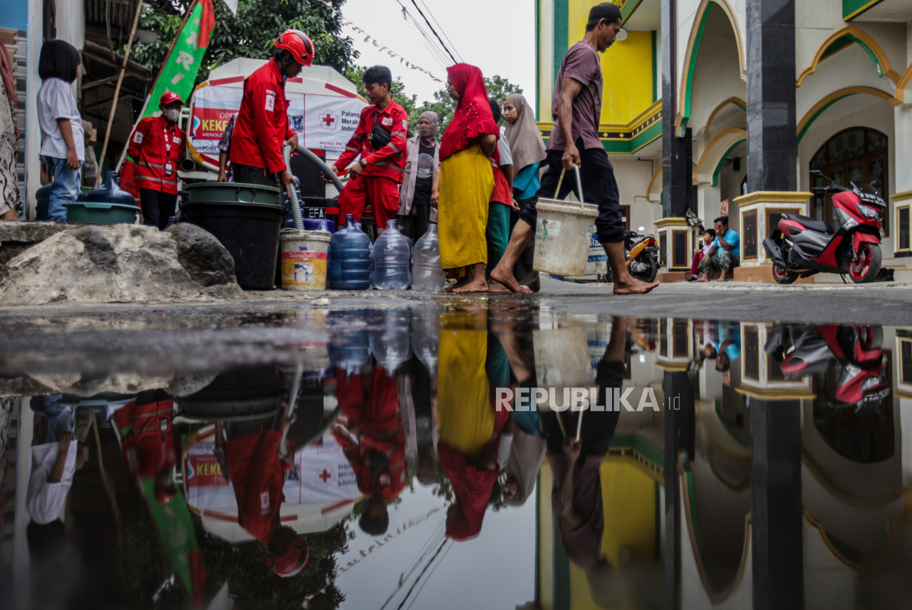 Sebanyak 5.000 liter air bersih telah didistribusikan kepada 150 Kepala Keluarga (KK) terdampak kekeringan di wilayah tersebut. PMI | Republika/Putra M. Akbar