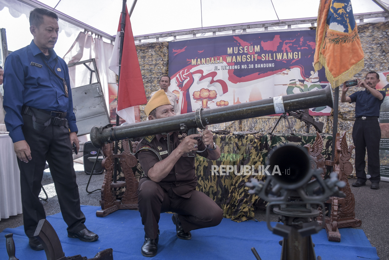 Pengunjung melihat koleksi museum Mandala Wangsit Siliwangi pada Museum Monpera Expo di halaman Monumen Perjuangan Rakyat Jawa Barat, Kota Bandung, Jawa Barat, Selasa (31/10/2023). | ABDAN SYAKURA/REPUBLIKA