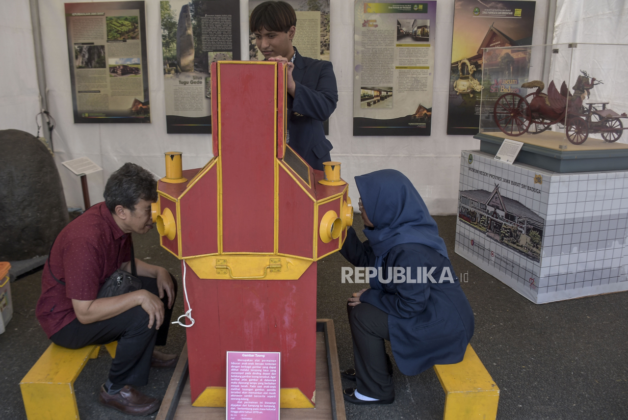 Pengunjung melihat koleksi museum Sri Baduga pada Museum Monpera Expo di halaman Monumen Perjuangan Rakyat Jawa Barat, Kota Bandung, Jawa Barat, Selasa (31/10/2023). | ABDAN SYAKURA/REPUBLIKA