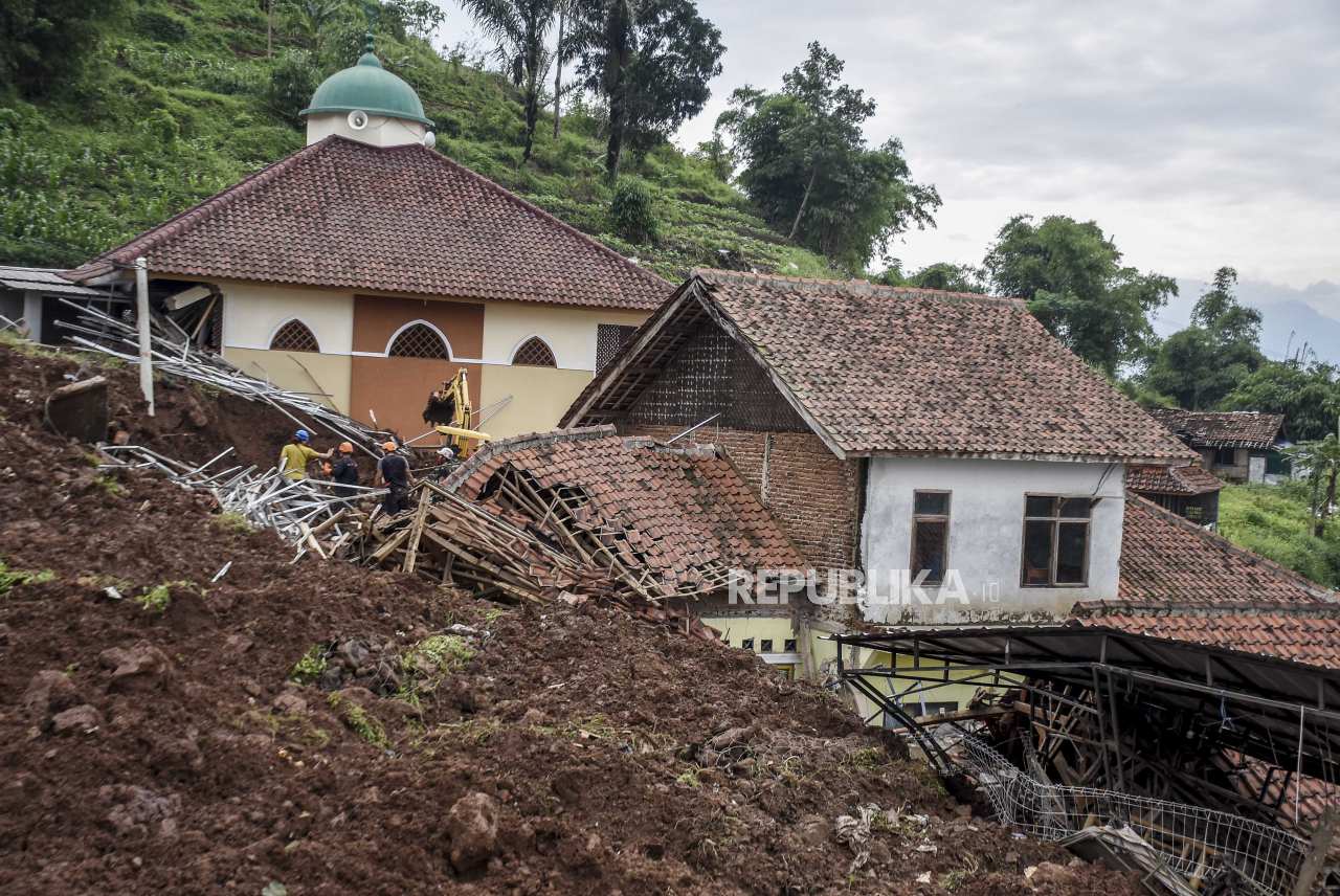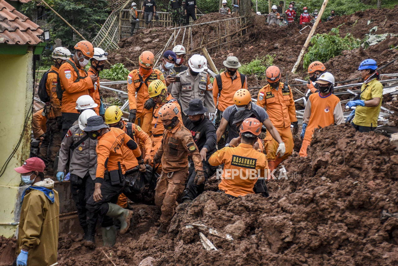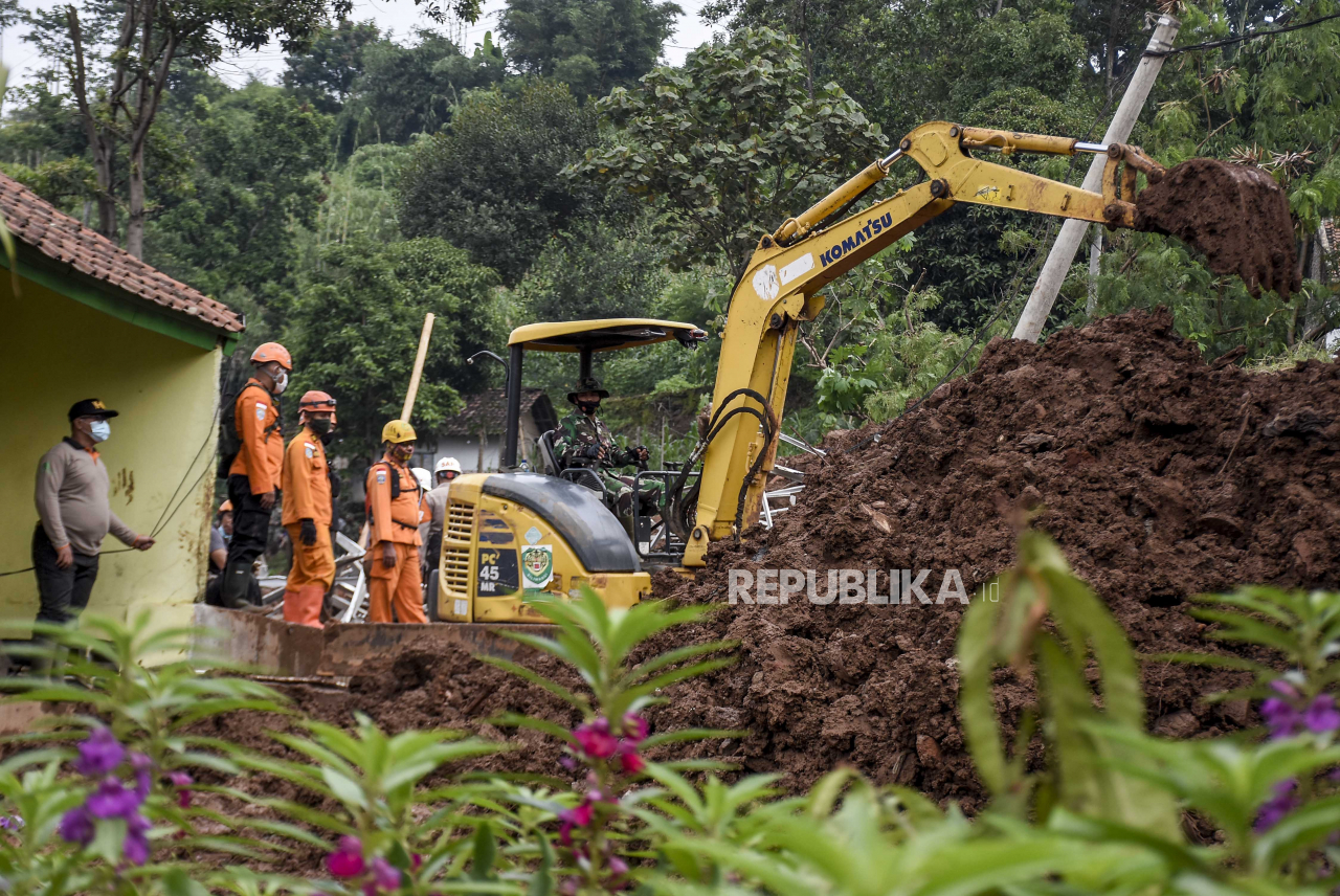 Pencarian korban yang tertimbun longsor di Desa Cihanjuang, Kecamatan Cimanggung, Kabupaten Sumedang, Ahad (10/1). Longsor yang disebabkan oleh kondisi tanah tidak stabil dan curah hujan tinggi pada Sabtu (9/1) mengakibatkan sekitar 14 rumah rusak berat dan 12 orang meninggal dunia serta belasan orang lainnya masih dalam pencarian. Foto: Abdan Syakura/Republika Baca Selengkapnya';