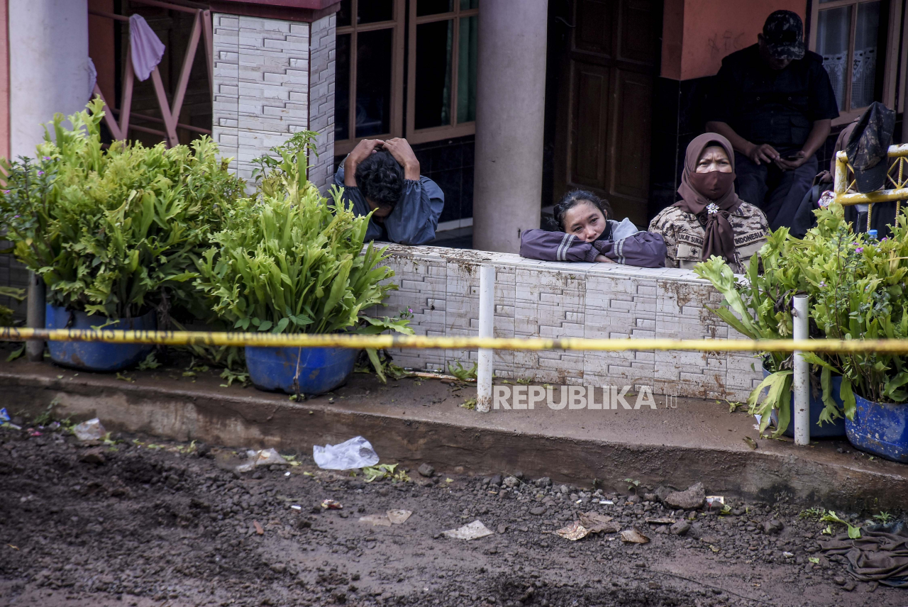 Keluarga korban menunggu proses pencarian korban akibat tanah longsor di Desa Cihanjuang, Kecamatan Cimanggung, Kabupaten Sumedang, Ahad (10/1). Longsor yang disebabkan oleh kondisi tanah tidak stabil dan curah hujan tinggi pada Sabtu (9/1) mengakibatkan | ABDAN SYAKURA/REPUBLIKA