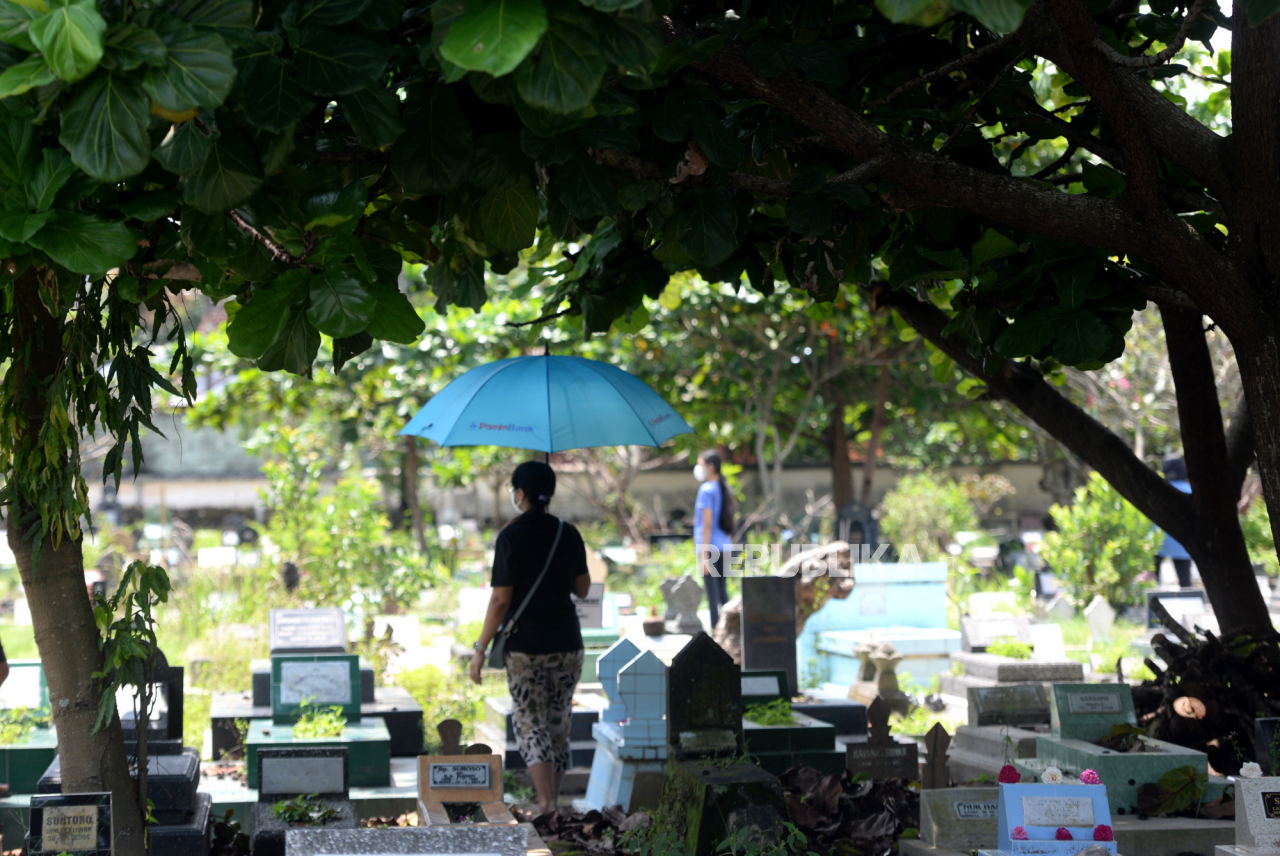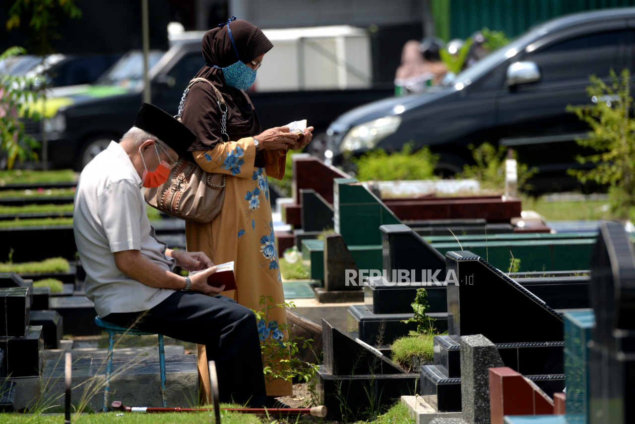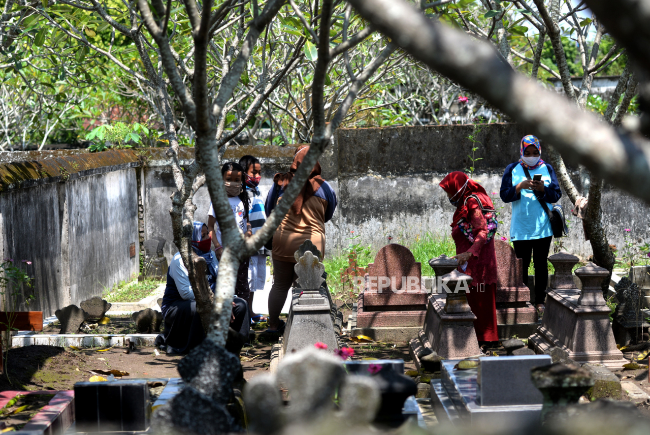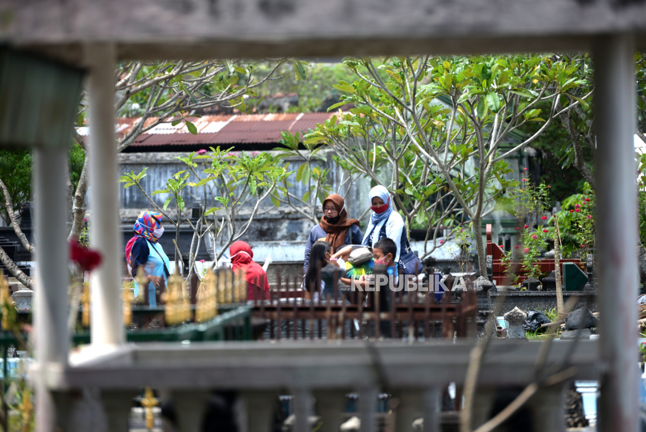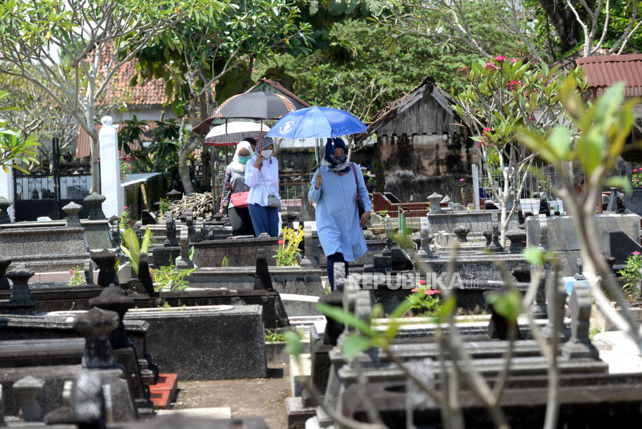 Ziarah di Pesarean Pakuncen, Yogyakarta, Ahad (11/4/2021). Tradisi nyekar atau ziarah kubur jelang Ramadhan masih dilakukan warga. Selain membersihkan area makam, peziarah juga mendoakan anggota keluarga yang sudah meninggal. Foto: Republika / Wihdan Hidayat Baca Selengkapnya';