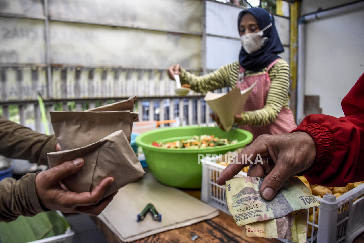 Warga membeli nasi bungkus saat kegiatan Gerakan Sosial Nasi Bungkus Dua Ribu di Warung Suroboyo, Jalan Natuna, Kota Bandung, Kamis (27/5). Gerakan sosial yang diinisiasi pegiat sosial Ismaya Safitri tersebut menyediakan paket makanan berisi beragam lauk | REPUBLIKA/ABDAN SYAKURA