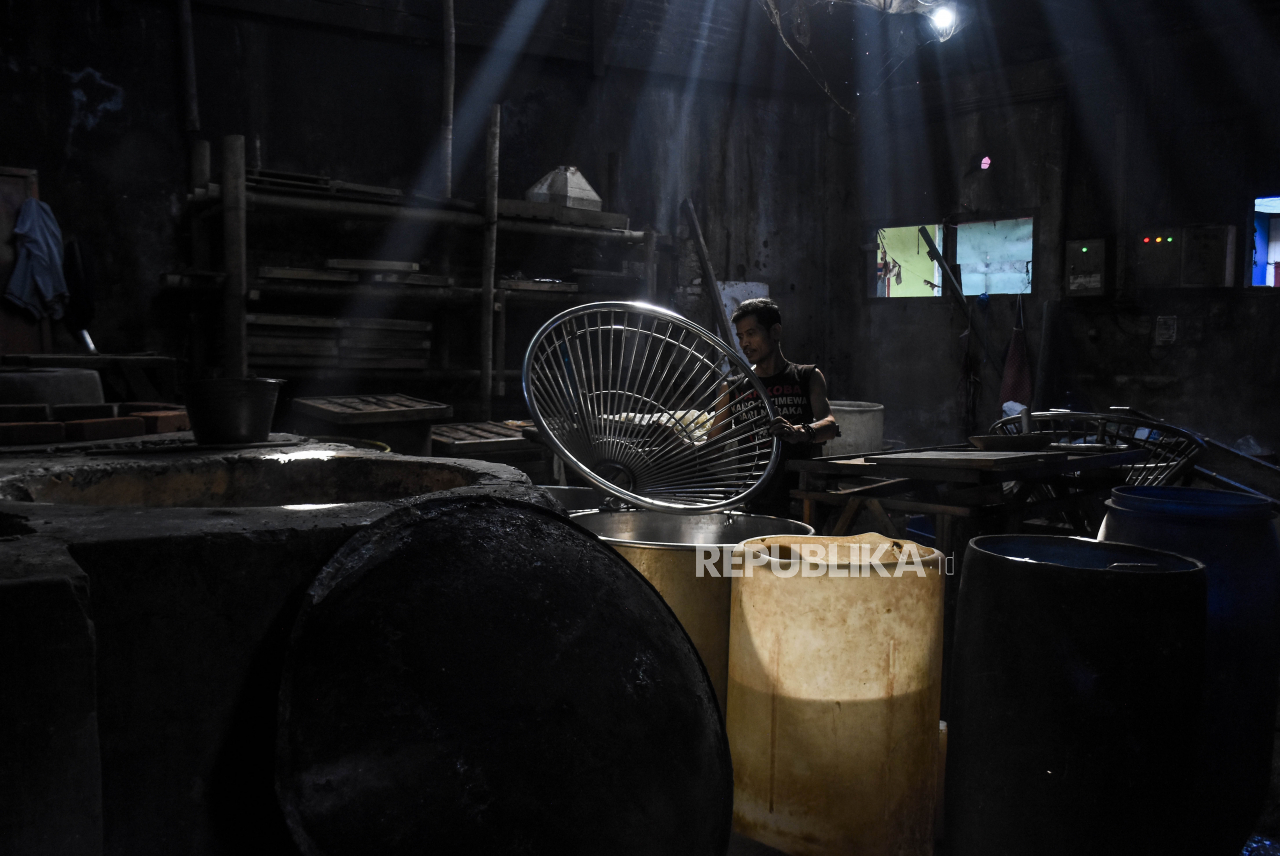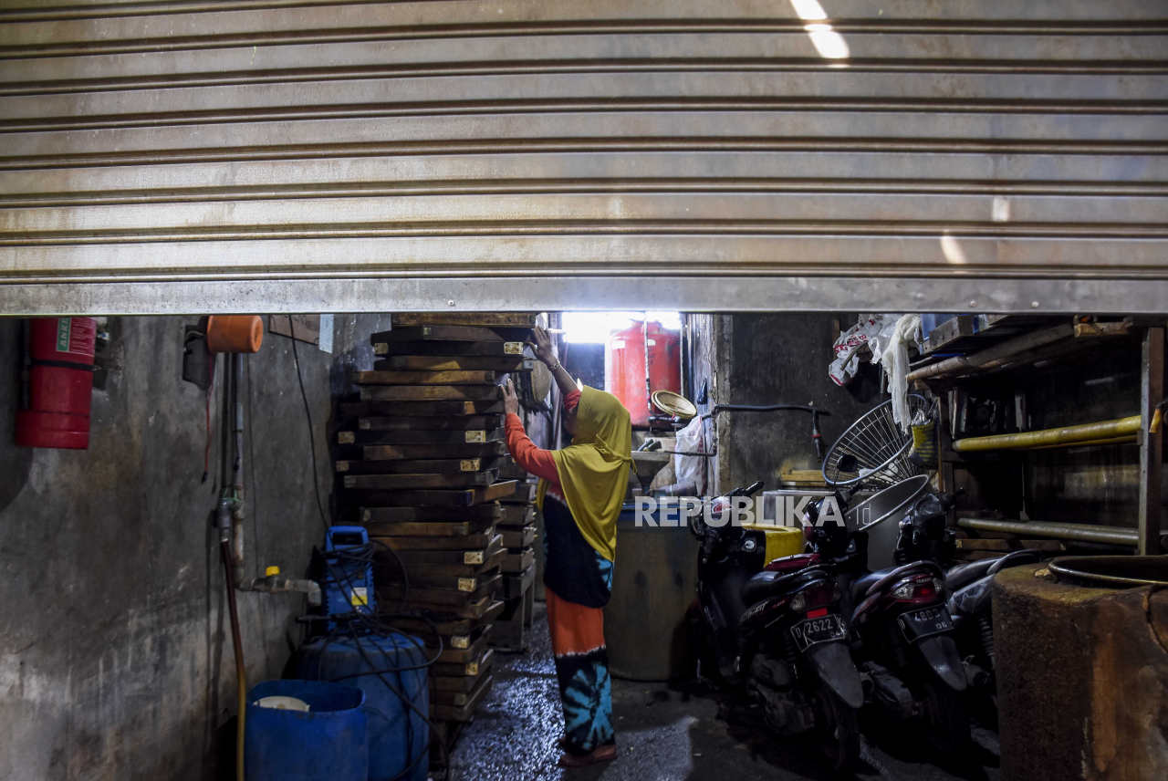 Pekerja merapikan peralatan produksi tahu dan tempe di salah satu industri rumahan di Sentra Industri Tahu Cibuntu, Babakan Ciparay, Kota Bandung, Jumat (28/5). Sejumlah industri pembuatan tahu dan tempe di Sentra Industri Tahu Cibuntu melakukan aksi mogo | REPUBLIKA/ABDAN SYAKURA