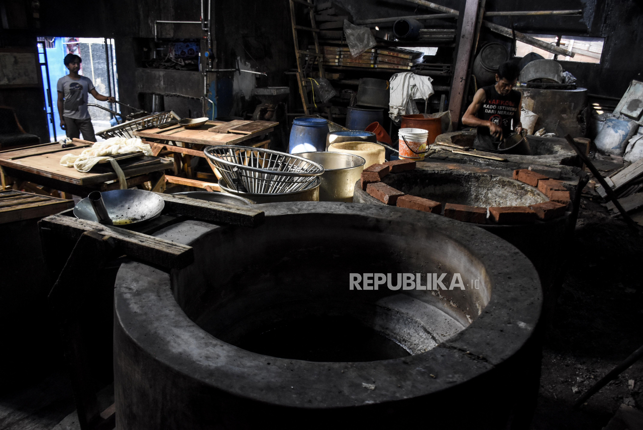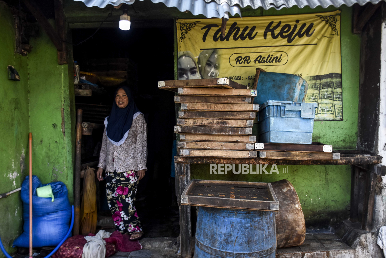 Sentra Industri Tahu Cibuntu, Babakan Ciparay, Kota Bandung, Jumat (28/5/2021). Aksi mogok produksi mulai dari tanggal 28-30 Mei mendatang akibat tingginya harga kedelai yang mencapai Rp11 ribu per kilogram dan berdampak pada kenaikan harga tahu dan tempe sebesar 15-25 persen atau sekitar Rp1.200 per potong. Foto: Republika/Abdan Syakura Baca Selengkapnya';