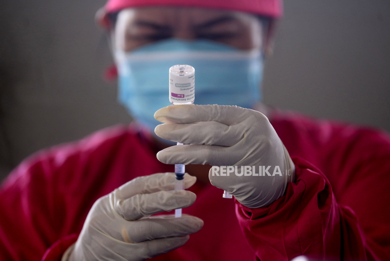 Petugas kesehatan menyiapkan vaksin Covid-19 sebelum disuntikan kepada warga di Pondok Pesantren Minhaajurrosyidiin di Jakarta, Senin (21/6). Pelaksanaan Vaksinasi Covid-19 yang akan diadakan oleh DPP LDII bekerja sama dengan Dinkes DKI Jakarta dan Ponpes | Prayogi/Republika.