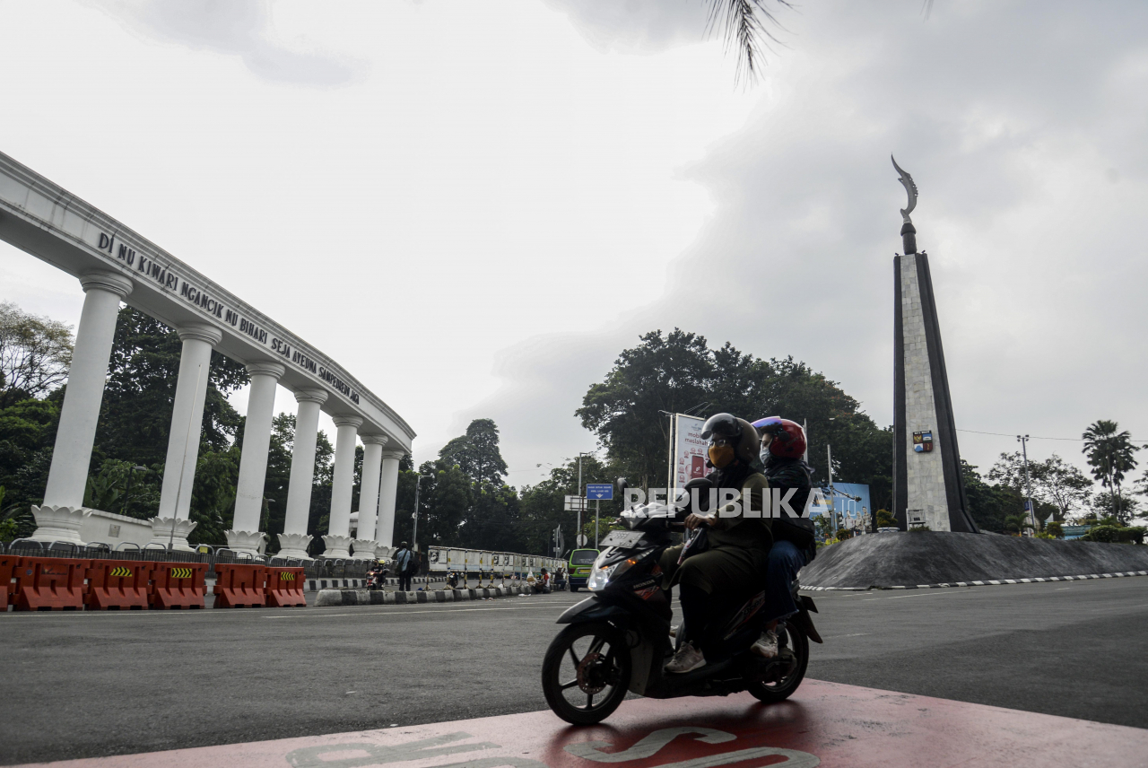 Pengendara motor melintasi Jalan Raya Otista, Kota Bogor, Jawa Barat, Selasa (20/7). Ruas jalan protokol di Kota Bogor terpantau lengang pada libur Hari Raya Idul Adha karena berkurangnya mobilitas warga saat masa pemberlakuan pembatasan kegiatan masyarak | Republika/Putra M. Akbar