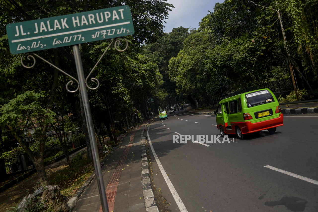 Sejumlah angkot melintasi Jalan Jalak Harupat, Kota Bogor, Jawa Barat, Selasa (20/7). Ruas jalan protokol di Kota Bogor terpantau lengang pada libur Hari Raya Idul Adha karena berkurangnya mobilitas warga saat masa pemberlakuan pembatasan kegiatan masyara | Republika/Putra M. Akbar
