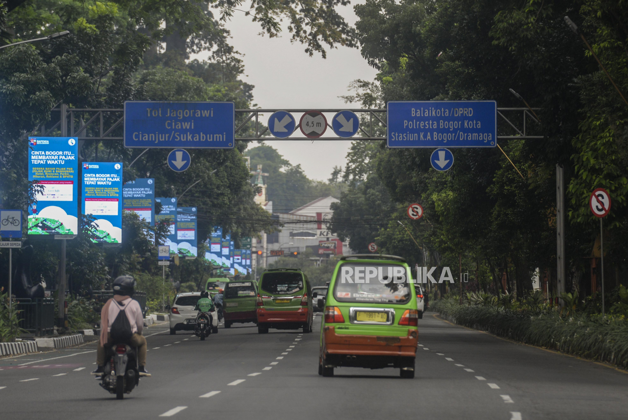Sejumlah kendaraan melintasi Jalan Raya Pajajaran, Kota Bogor, Jawa Barat, Selasa (20/7). Ruas jalan protokol di Kota Bogor terpantau lengang pada libur Hari Raya Idul Adha karena berkurangnya mobilitas warga saat masa pemberlakuan pembatasan kegiatan mas | Republika/Putra M. Akbar