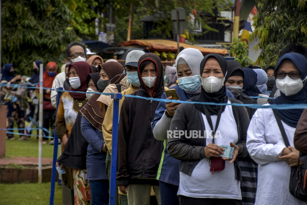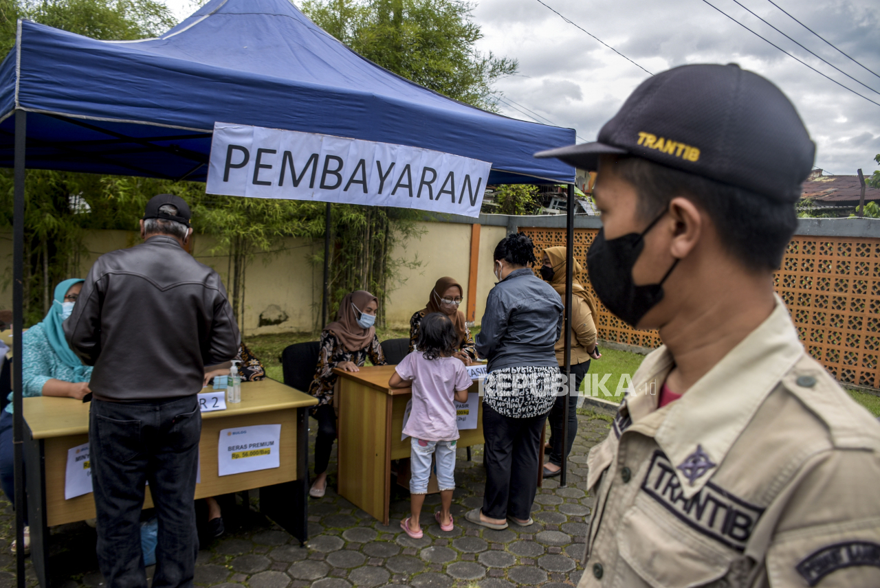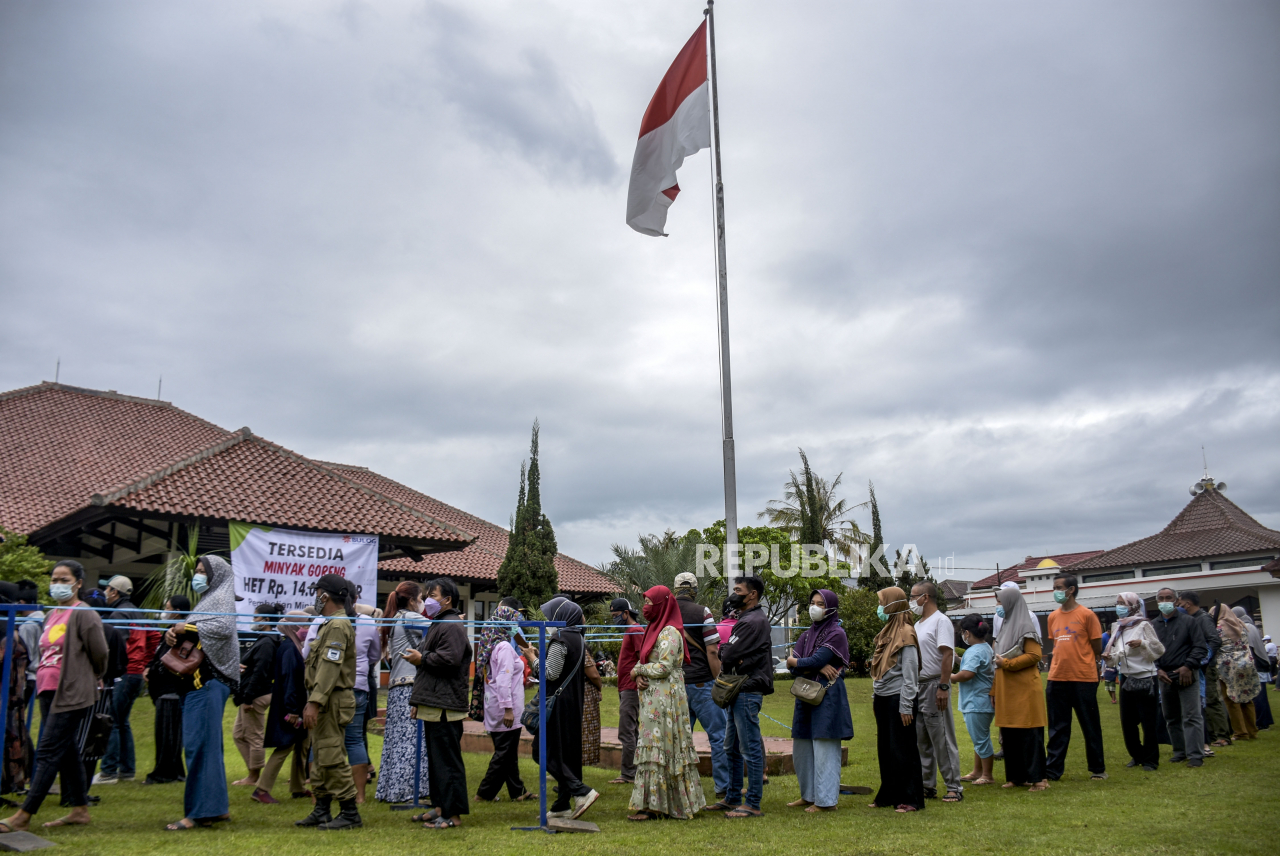 Warga mengantre untuk membeli minyak goreng saat operasi pasar minyak goreng di Kantor Bulog Cabang Bandung, Jalan Cipamokolan, Kota Bandung, Kamis (24/2/2022). Pemerintah Kota Bandung melalui Dinas Perdagangan dan Perindustrian (Disdagin) Kota Bandung be | REPUBLIKA/ABDAN SYAKURA