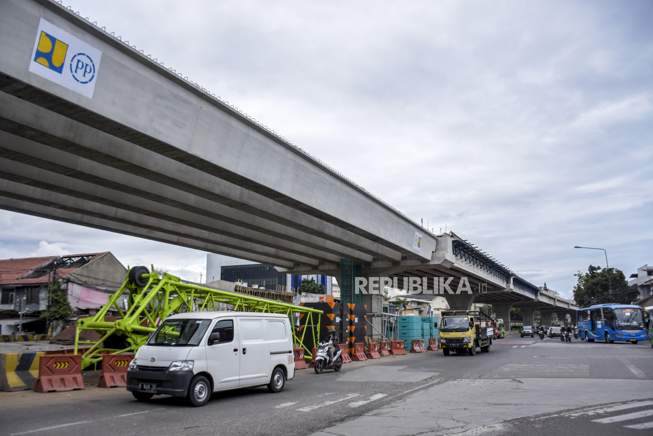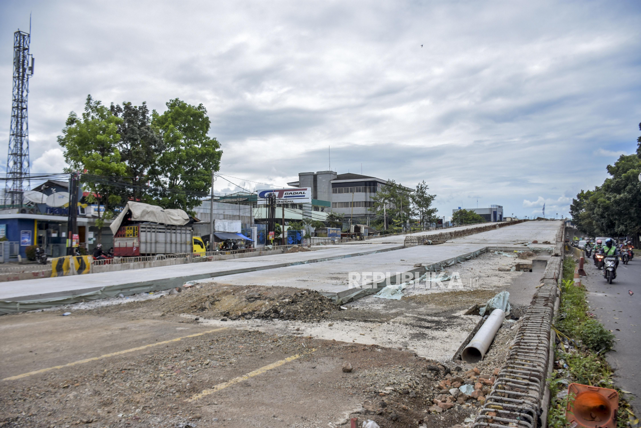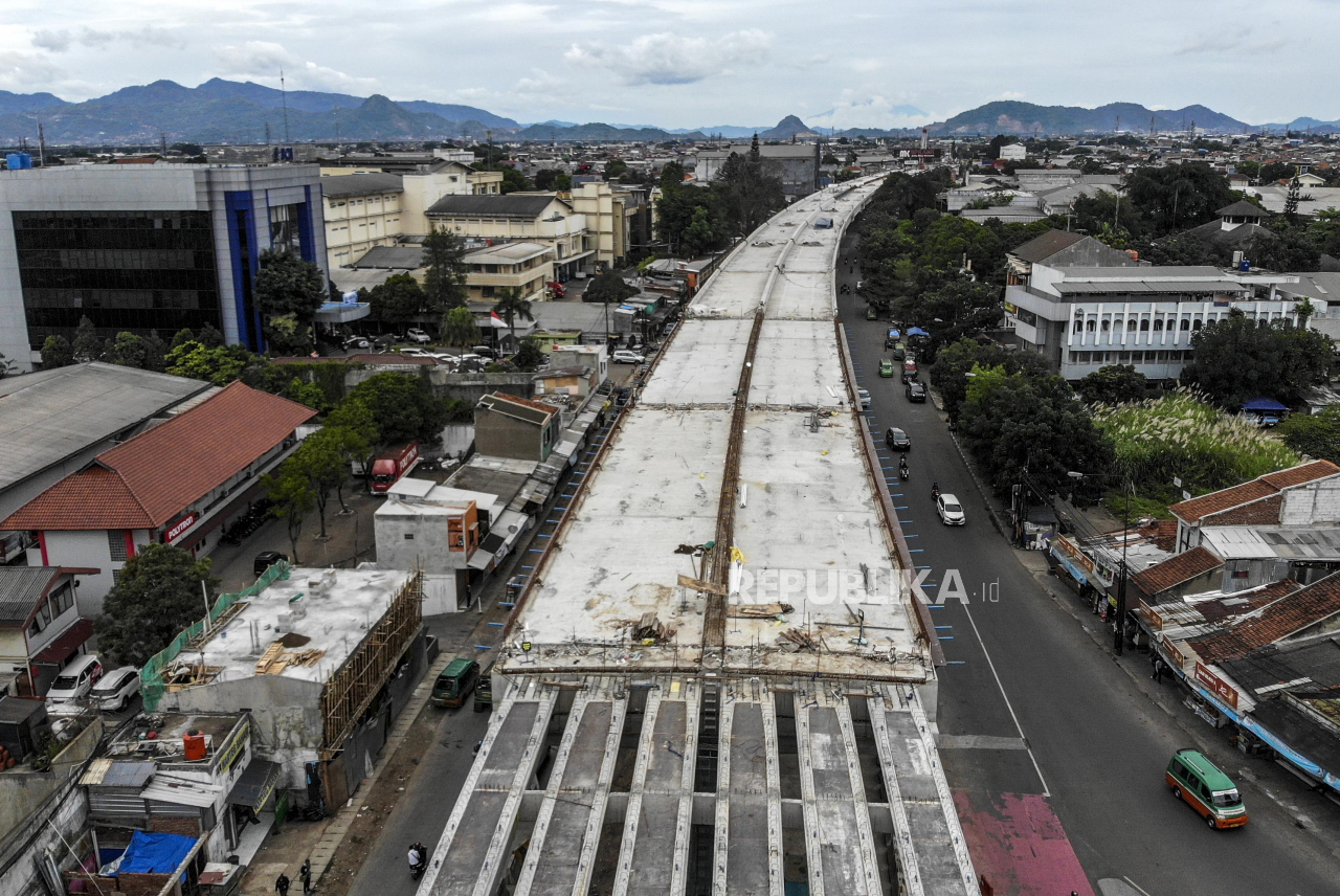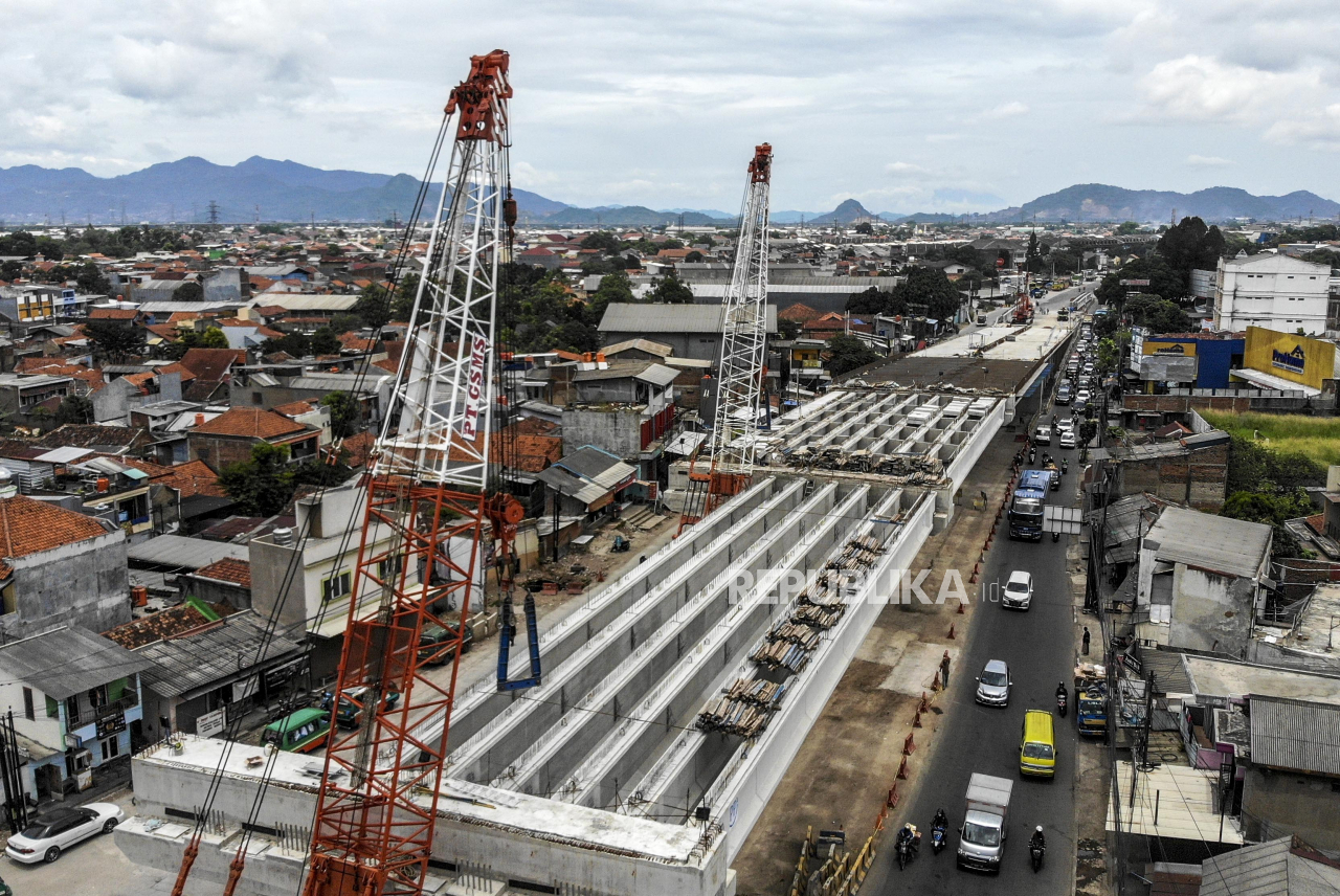 Pembangunan Jembatan Layang (flyover) Kopo di Jalan Soekarno Hatta, Kota Bandung, Jumat (25/2/2022). Pemerintah Kota Bandung menyatakan pembangunan Flyover Kopo tersebut telah mencapai 80 persen dan ditargetkan rampung pada akhir April 2022 mendatang, serta diharapkan mampu mengurai kemacetan yang kerap terjadi di kawasan tersebut. Foto: Republika/Abdan Syakura Baca Selengkapnya';