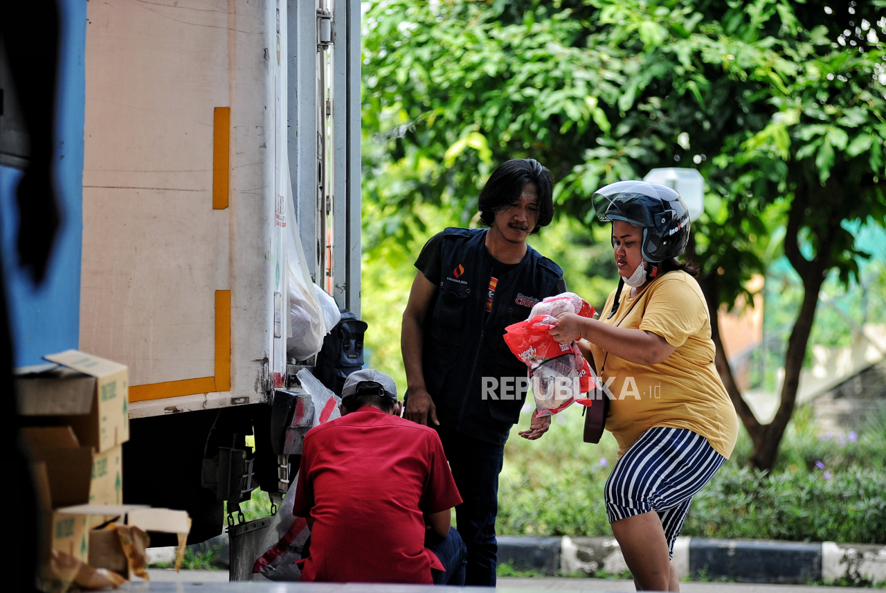 Warga membeli pangan bersubsidi di Rumah Susun Jatinegara Kaum, Rabu (11/5/2022). Dinas Ketahanan Pangan, Kelautan dan Pertanian (KPKP) menggelar subsidi pangan bagi warga penghuni rusun di seluruh DKI Jakarta setiap satu bulan sekali dengan harga satu paket berisi beras, daging sapi, daging ayam, ikan, dan telur seharga Rp 96 ribu dan bagi warga yang memiliki Kartu Jakarta Pintar seharga Rp 126 ribu dengan tambahan satu dus susu. Sementara, distribusi pangan subsidi untuk hari ini di Rusun Jatinegara Kaum sebanyak 230 paket. Republika/Thoudy Badai