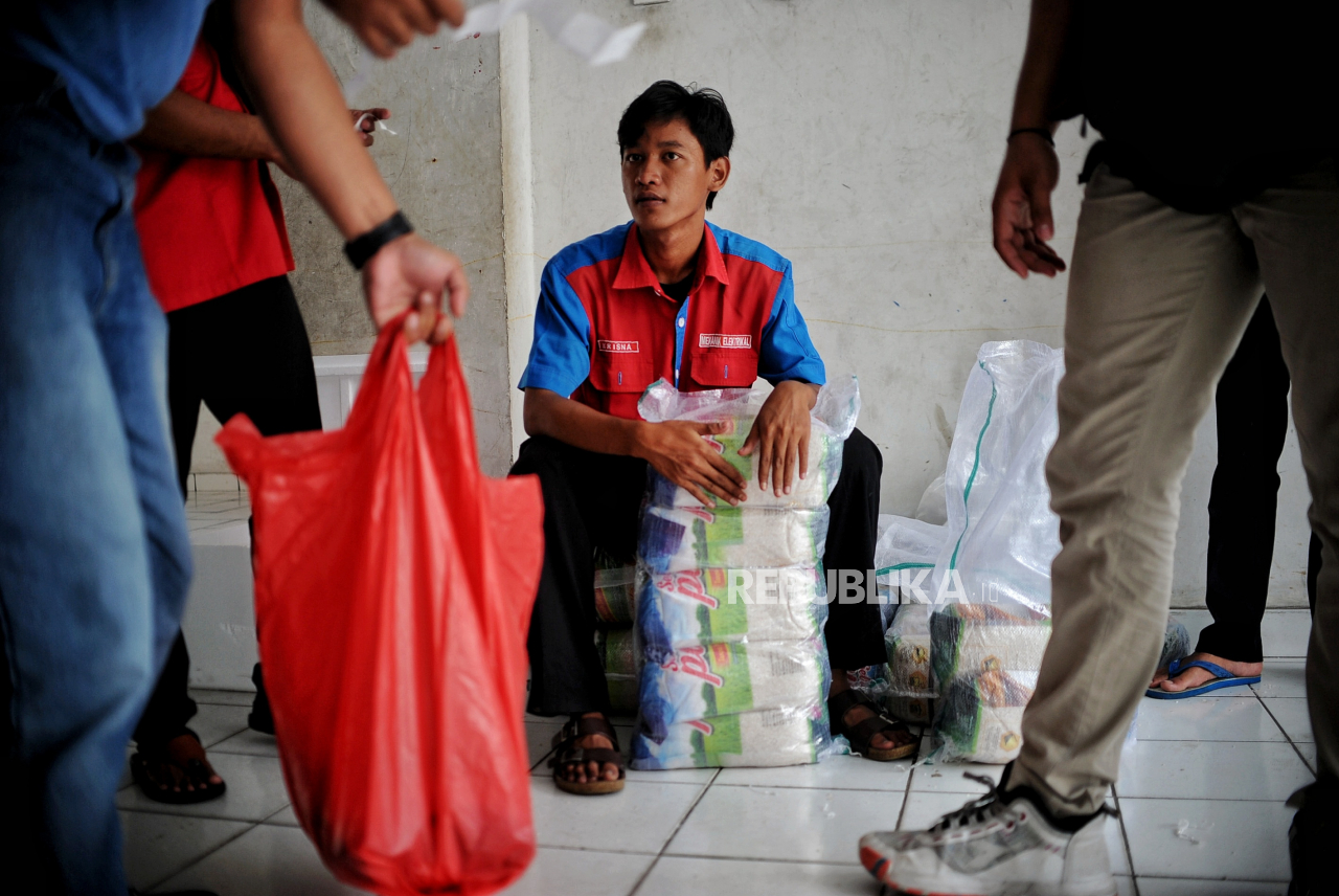Petugas merapikan dagangan sebelum mendistribusikan pangan bersubsidi di Rumah Susun Jatinegara Kaum, Rabu (11/5/2022). Dinas Ketahanan Pangan, Kelautan dan Pertanian (KPKP) menggelar subsidi pangan bagi warga penghuni rusun di seluruh DKI Jakarta setiap | Republika/Thoudy Badai