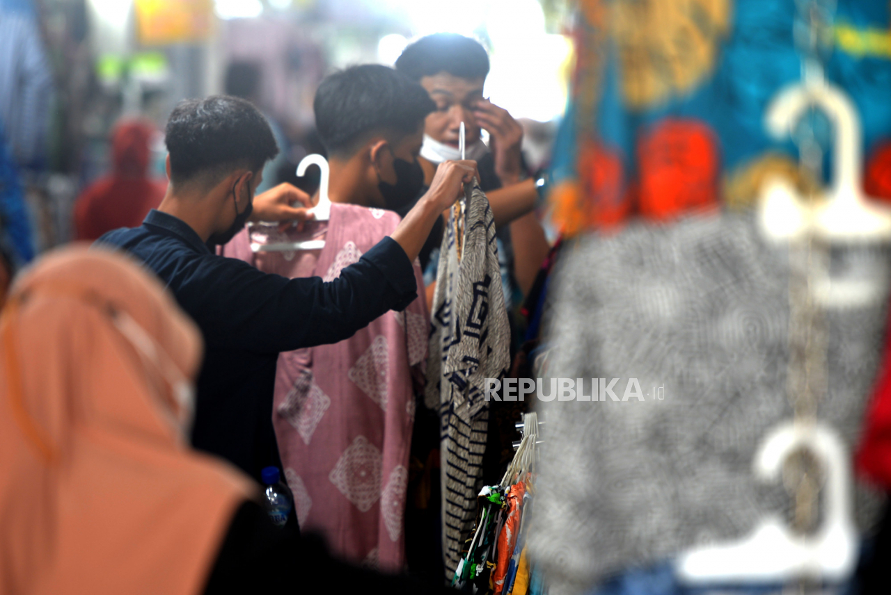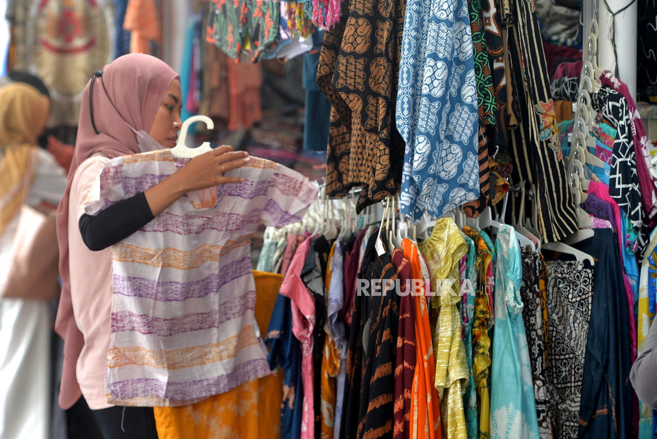 Pedagang menata dagangan pakaian di Teras Malioboro 2, Yogyakarta, Kamis (26/5/2022). Libur nasional membawa berkah bagi pedagang cenderamata di Teras Malioboro 2. Sejak menjelang siang wisatawan mulai ramai untuk membeli Anke cenderamata khas Yogyakarta. | Wihdan Hidayat / Republika