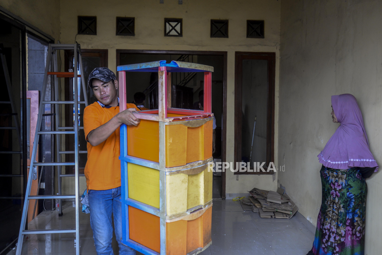 Petugas membawa barang-barang milik warga yang terdampak pembebasan lahan proyek Jalan Tol Cibitung-Cilincing seksi 4 di kawasan Semper Timur, Cilincing, Jakarta, Selasa (8/11/2022). Pembebasan lahan sebanyak 49 bidang tanah tersebut untuk mendukung perce | Republika/Putra M. Akbar