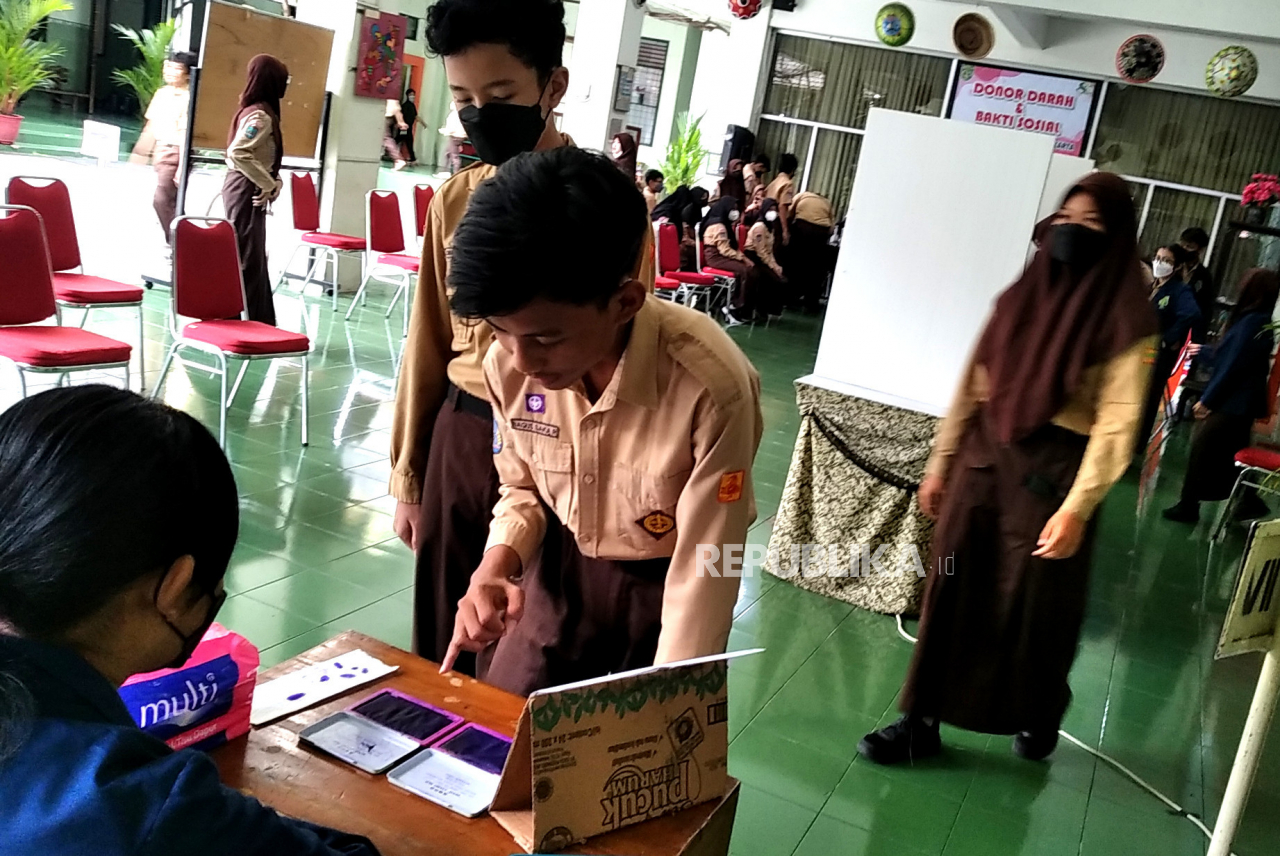YOGYAKARTA -- Siswa siswi SMPN 2 Yogyakarta mengikuti Pemilihan Ketua OSIS (Pemilos) di SMPN 2 Yogyakarta, Jumat (27/1/2023).