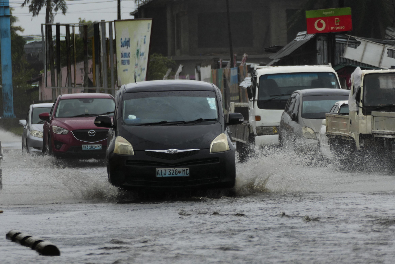 Kendaraan melintasi jalanan yang tergenang banjir di Kota Quelimane, Mozambik, pasca topan Freddy melanda, Senin (12/3/2023). Ibukota provinsi ini menjadi kota besar yang palong dekat dengan pusat topan. | LUSA/EPA-EFE/ANDRE CATUEIRA