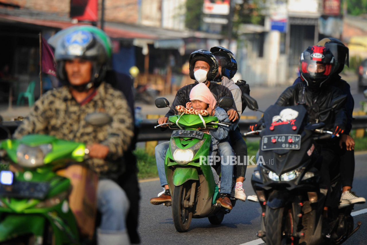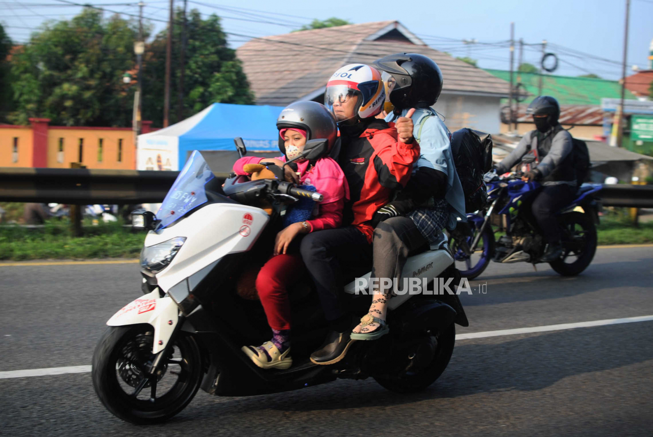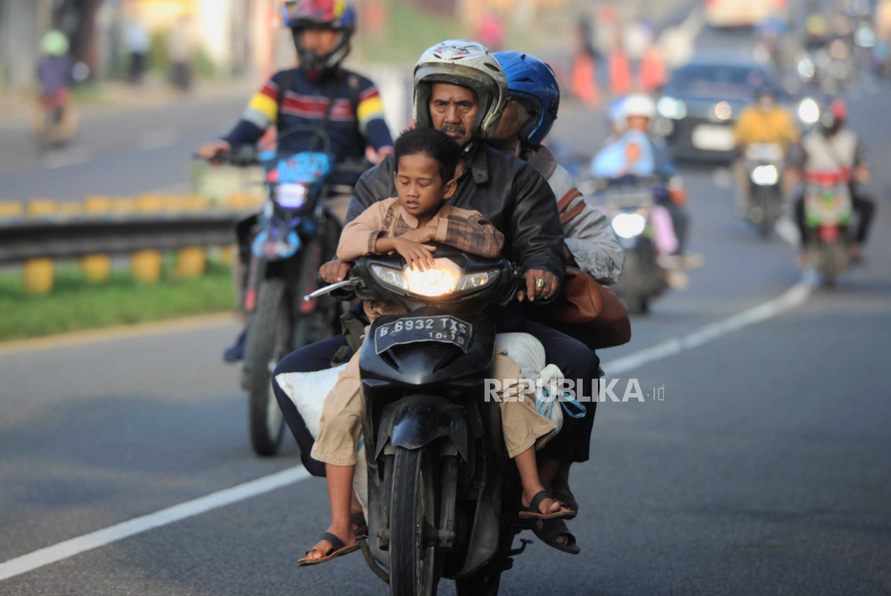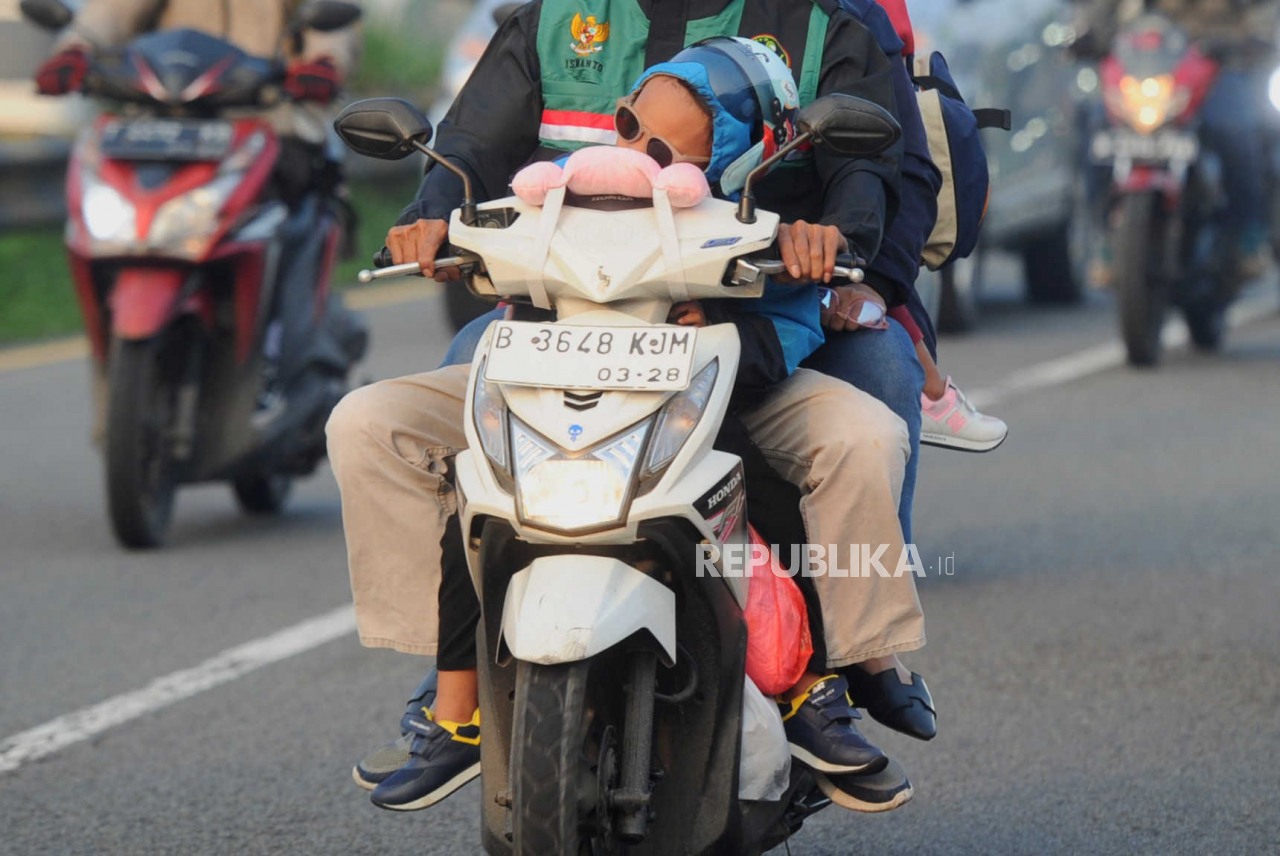 Masih banyak pemudik yang membawa anak saat mudik mengendarai sepeda motor.