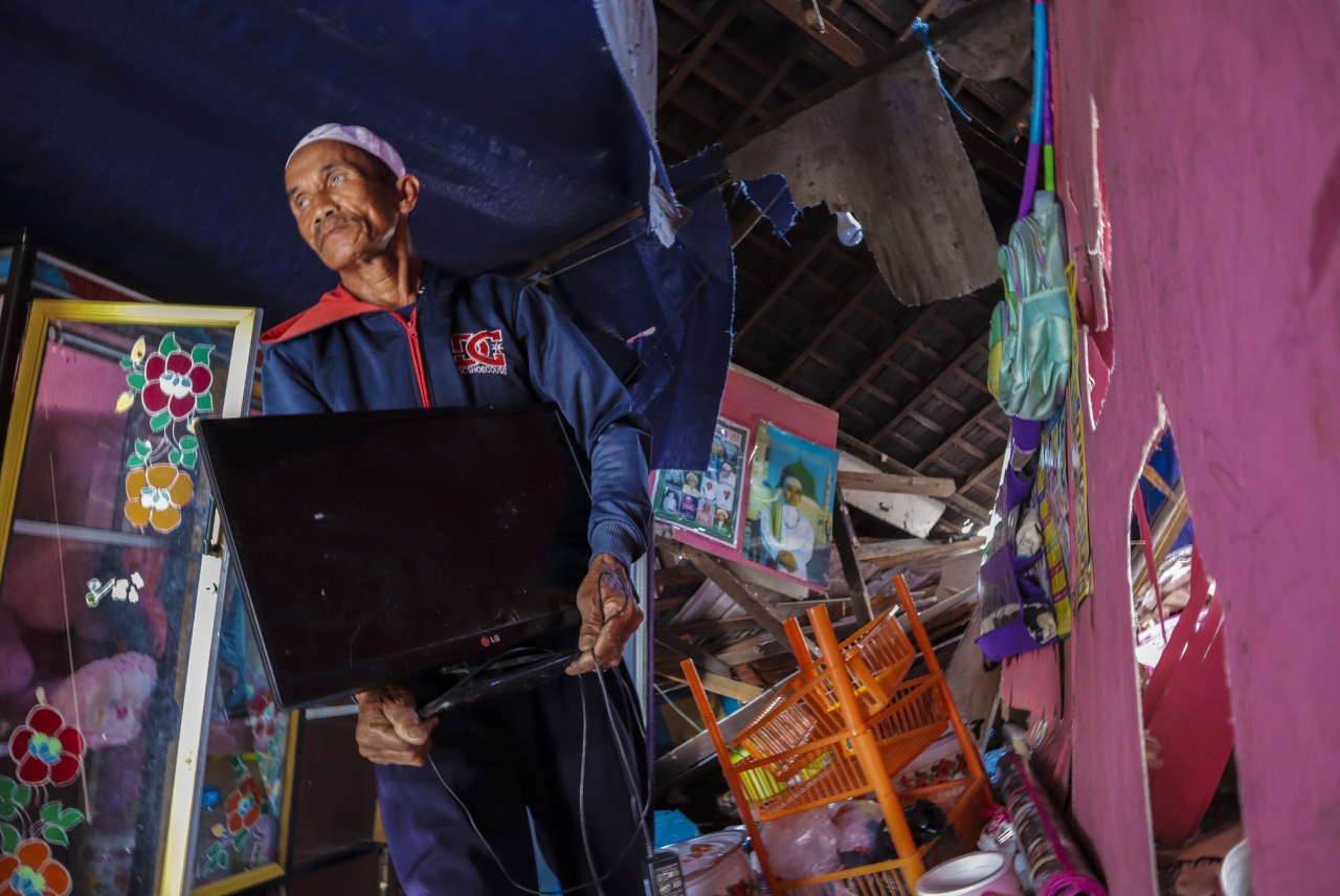 "Akibat dari angin kencang ini, pohon rumbia sebagai tambat tercabut," ujar Kapolsek Candi Laras Utara, Ipda Ketut Sedemen.