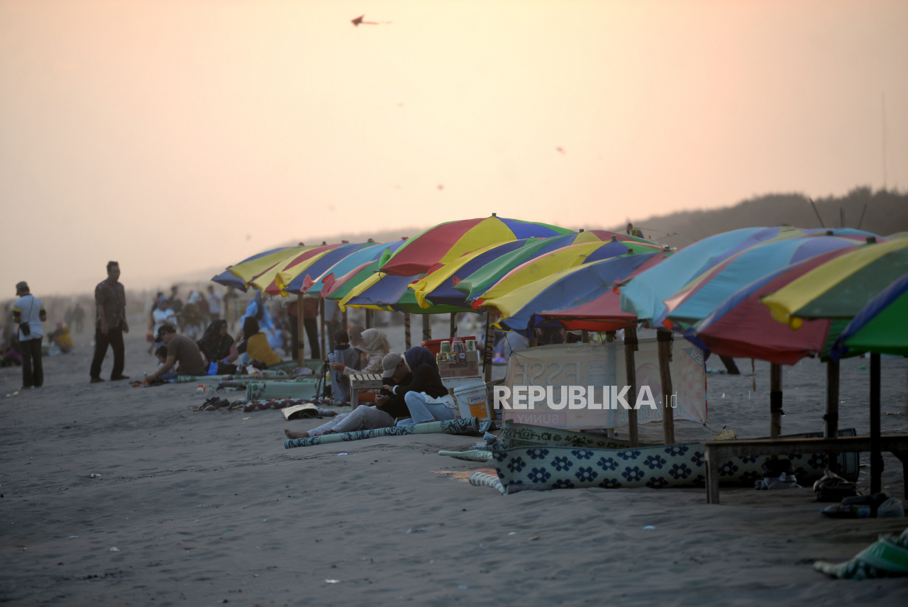 Wisatawan memadati kawasan wisata saat senja di Pantai Parangtritis, Bantul, Yogyakarta, Kamis (1/6/2023). | Republika/Wihdan Hidayat