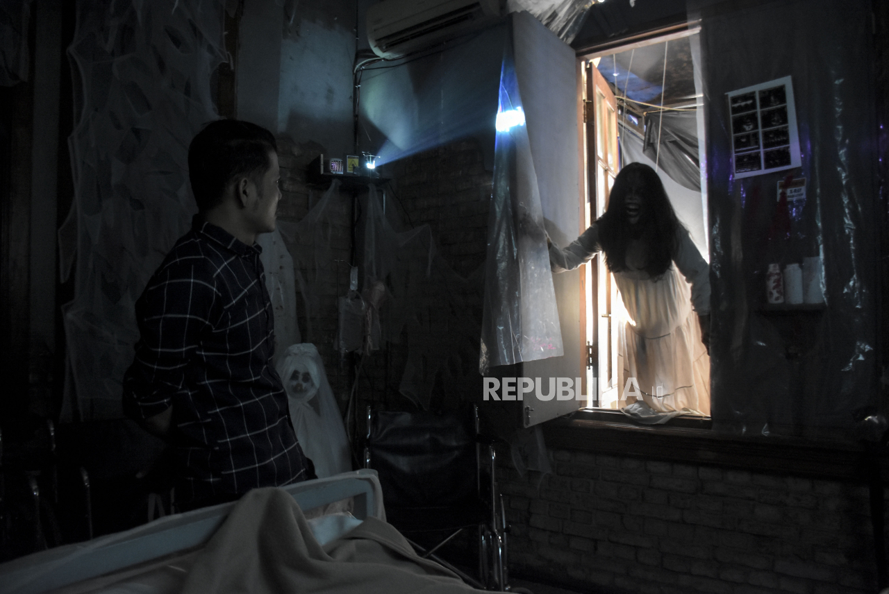 Pengunjung berada di area wahana uji nyali Bangsal Mencekam di Karnivor, Kota Bandung, Jawa Barat, Senin (9/10/2023). | ABDAN SYAKURA/REPUBLIKA