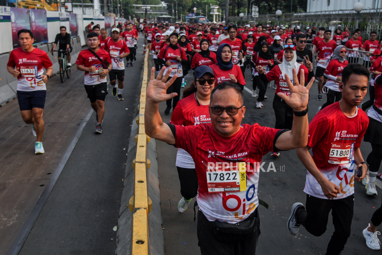 BTN Jakarta Run 2023 yang diikuti oleh 12.600 pelari dari dalam dan luar negeri tersebut memperlombakan empat kategori berbeda. | Republika/Putra M. Akbar