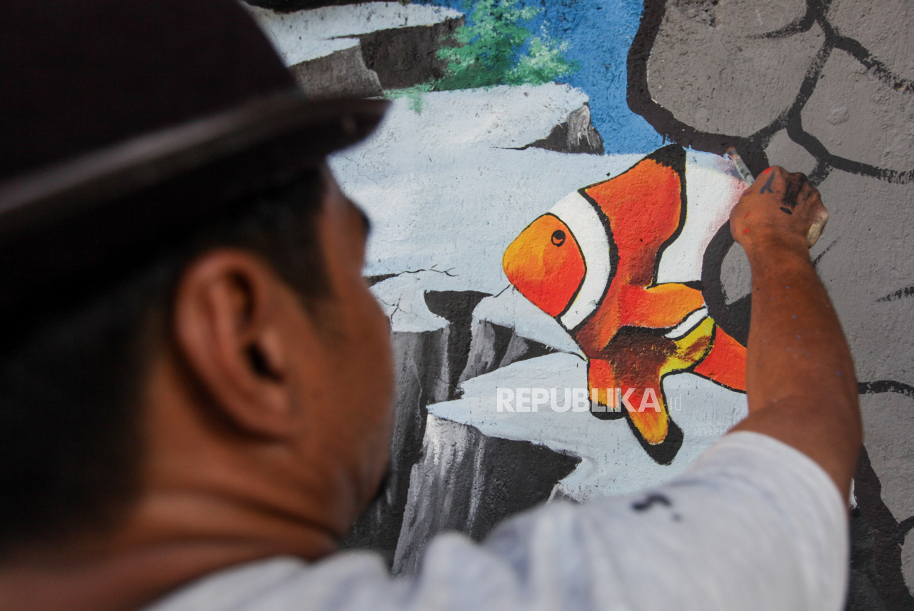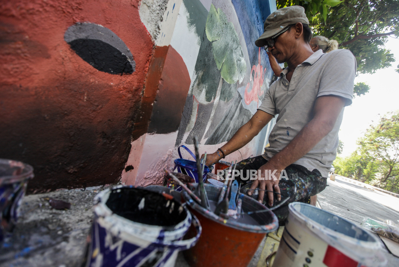 Lukisan mural ini untuk menimbulkan kesan hidup lebih dekat dengan alam serta membuat kawasan tersebut terlihat lebih estetik. | Republika/Putra M. Akbar