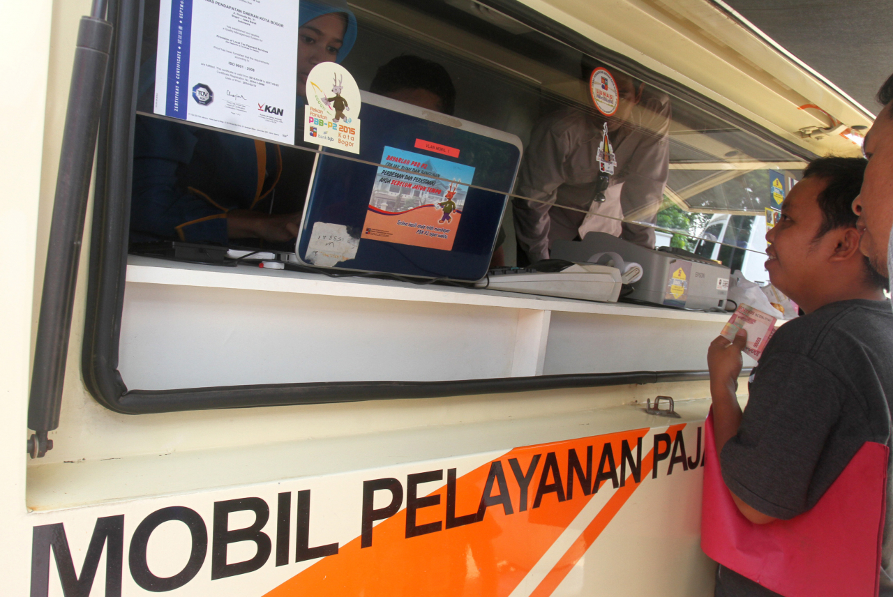 Petugas melayani warga untuk membayar Pajak Bumi dan Bangunan (PBB) di Jalan Juanda, Kota Bogor, Jawa Barat. | ANTARA FOTO